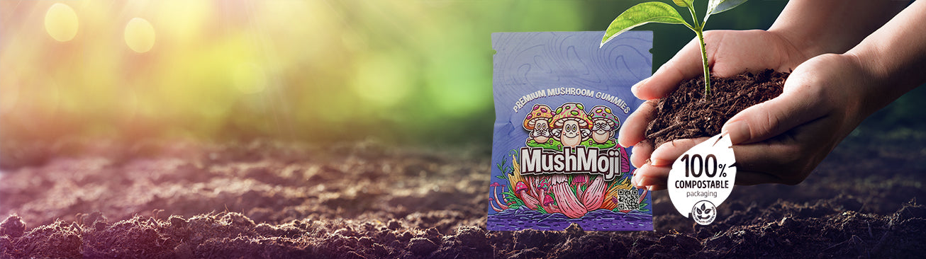 MUSHMOJI USES COMPOSTABLE & SUSTAINABLE PACKAGING
