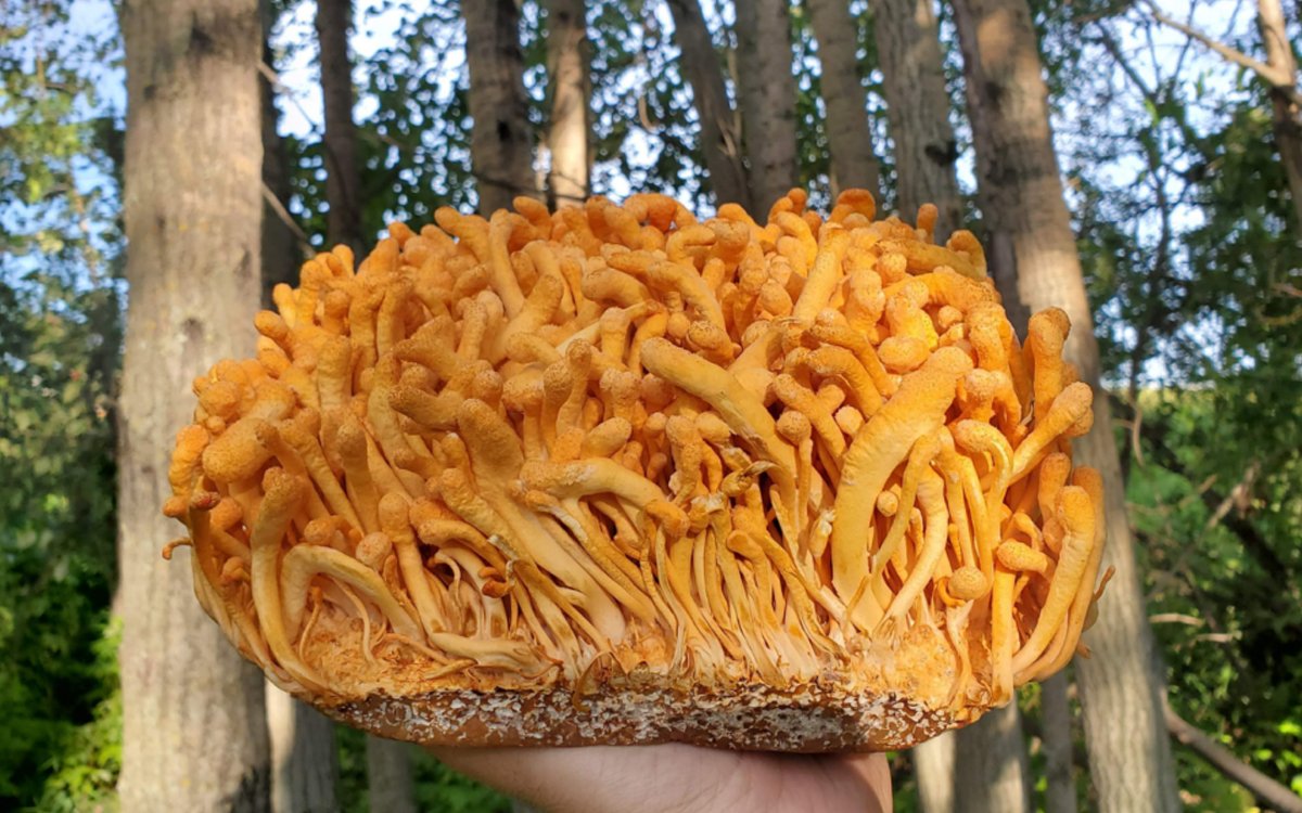 Luckily, Cordyceps militaris has all the firepower of it’s zombie-making relatives, without the need to parasitize an insect. The whole fruiting body can be grown organically and sustainably on a bed of rice and soy.